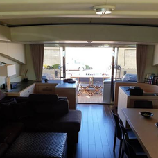 The owner's cabin is full-beam, furnished with a double bed, a corner vanity on one side and a sofa on the opposite side. A walk-in closet and a large bathroom. Continuing towards the bow we meet the relaxation room, which has already been mentioned, then there is the double guest cabin (to the two separate beds can be added a third), equipped with a personal bathroom. Further ahead is the VIP cabin and has a double bed, a sofa and a bathroom.